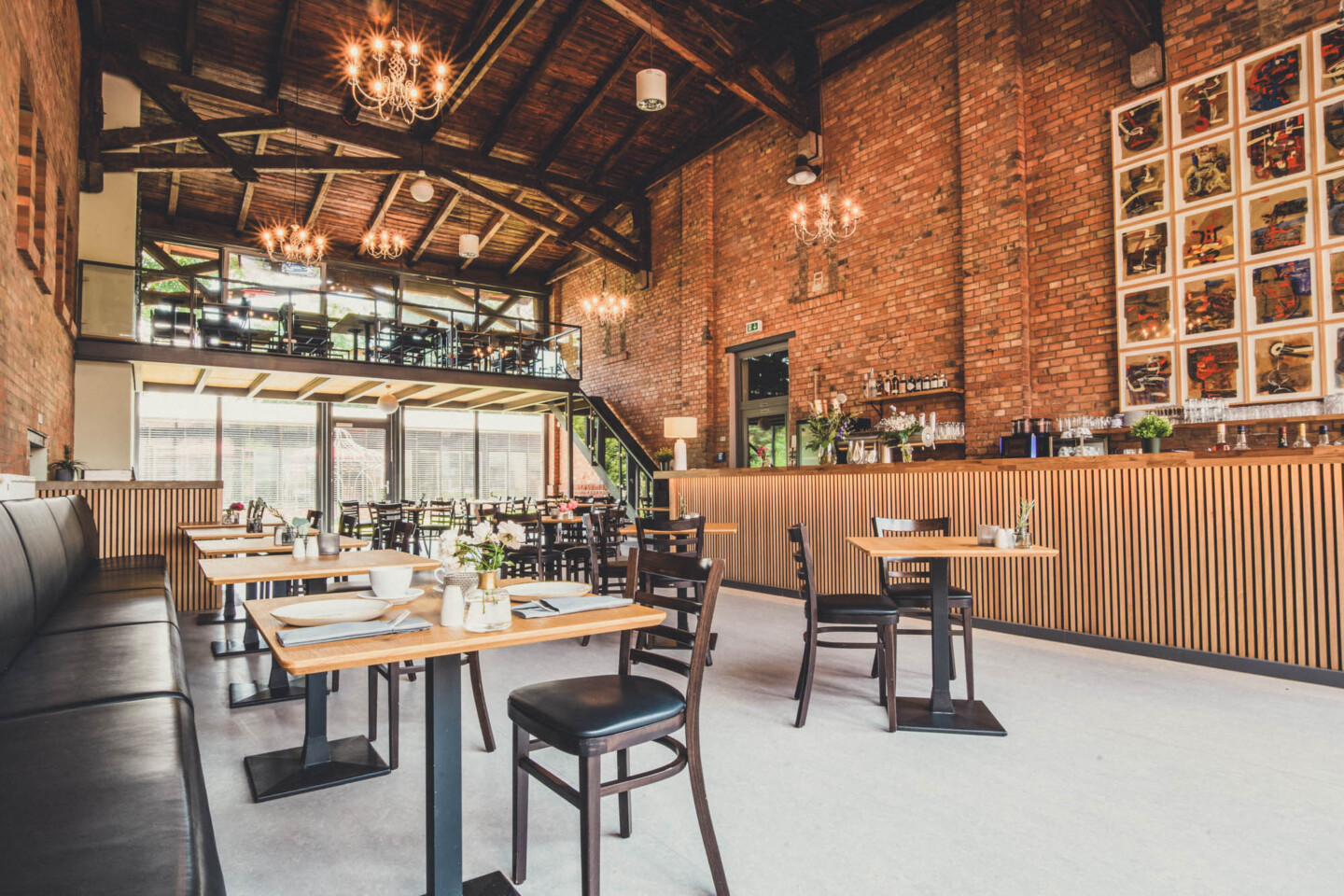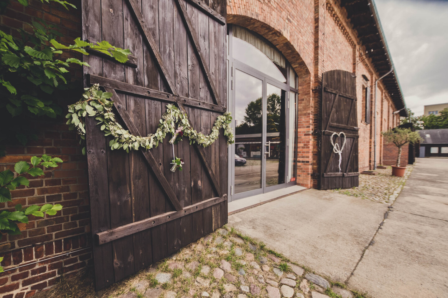 Mit Ihrem alten Holzgebälk, den warmen Backsteinmauern sowie den strahlenden Kronleuchtern bietet die Scheune eine einzigartige charmante Atmosphäre.